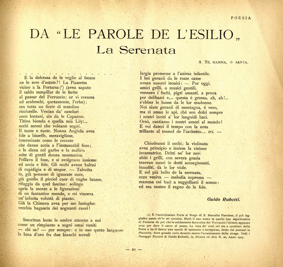 Da «Le parole de l'esilio»: La serenata