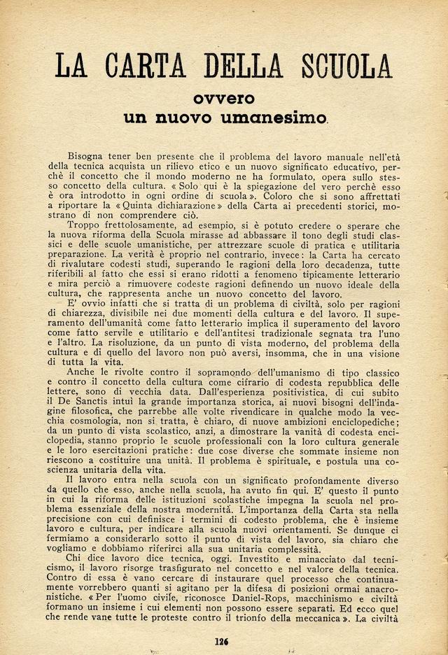 La Carta della Scuola ovvero un nuovo umanesimo