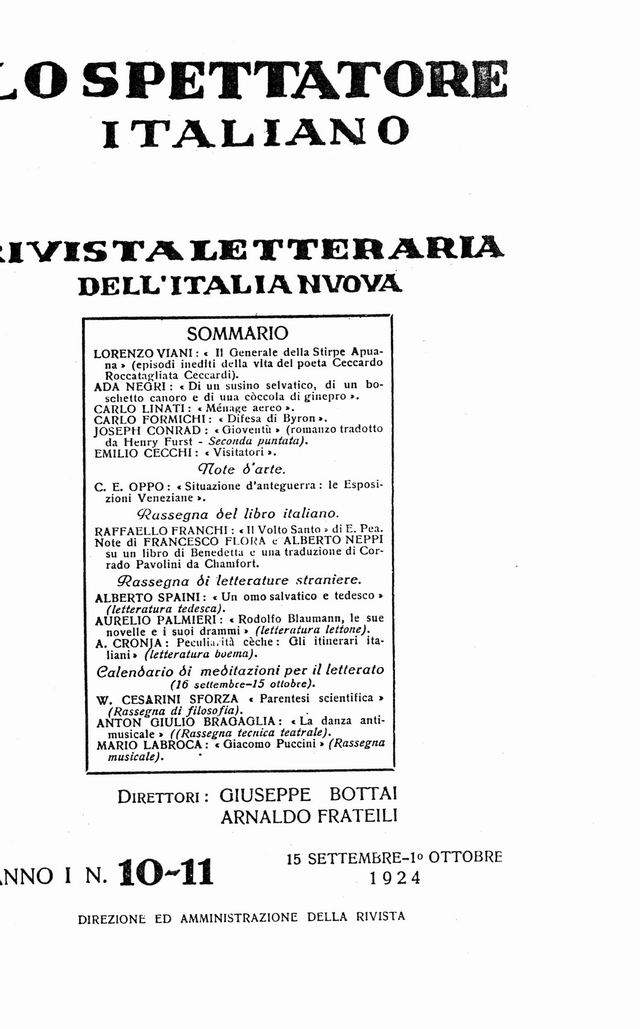 Lo Spettatore italiano: anno 1924 fascicolo 10/11
