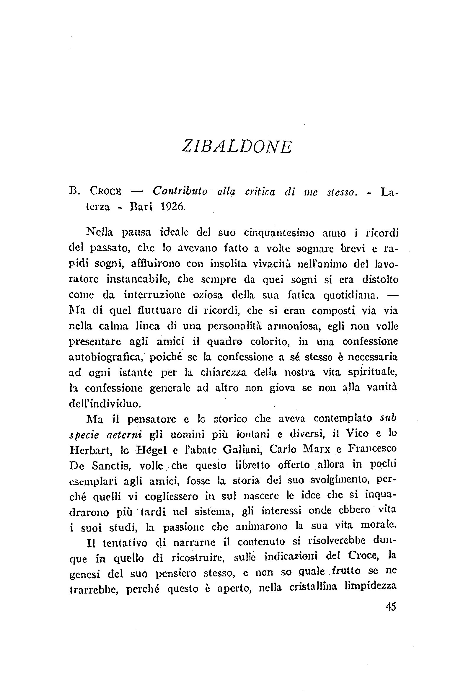 Benedetto Croce, Contributo alla critica di me stesso