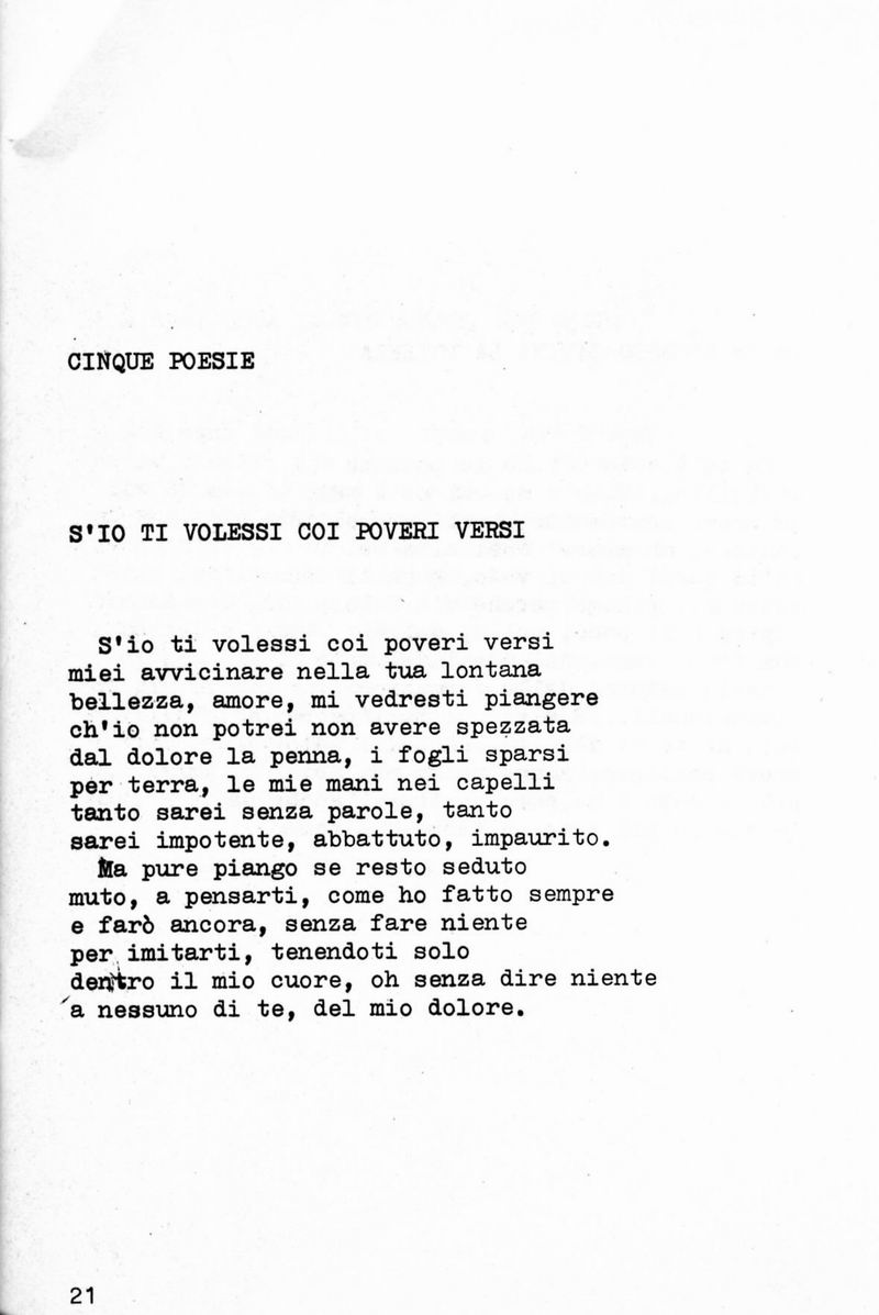 Cinque poesie: S' io ti volessi coi poveri versi
