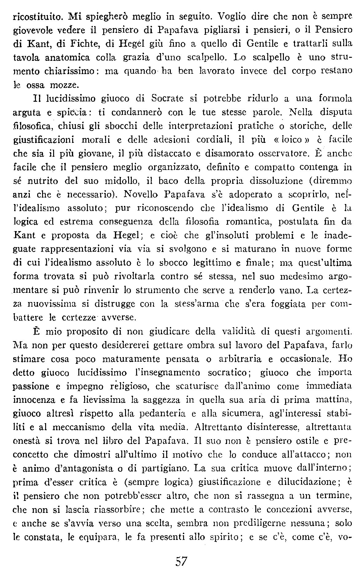Novello Papafava, L'idealismo assoluto (considerazioni)