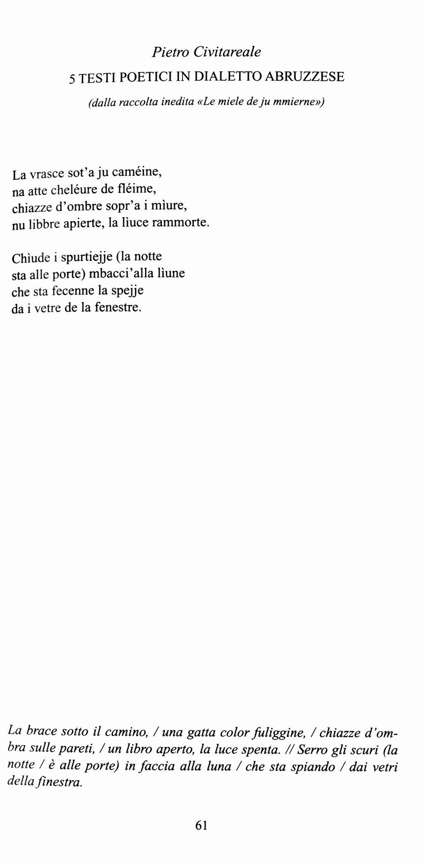 5 testi poetici in dialetto abruzzese: [La vrasce sot'a ju caméine…]