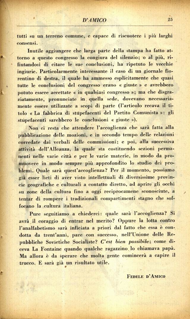 Sull'Alleanza della Cultura