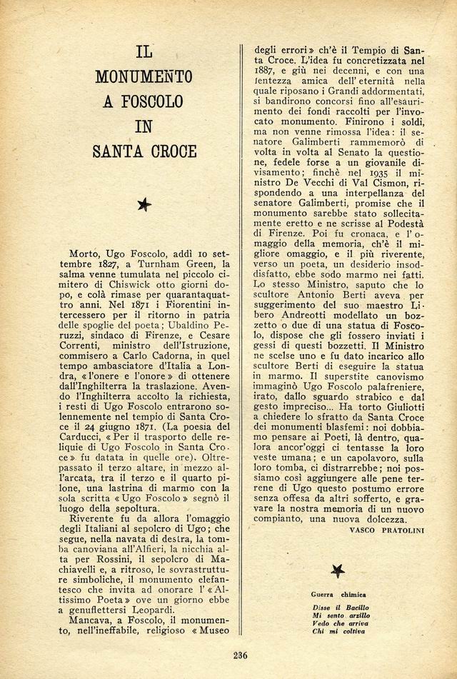 Il monumento a Foscolo in Santa Croce