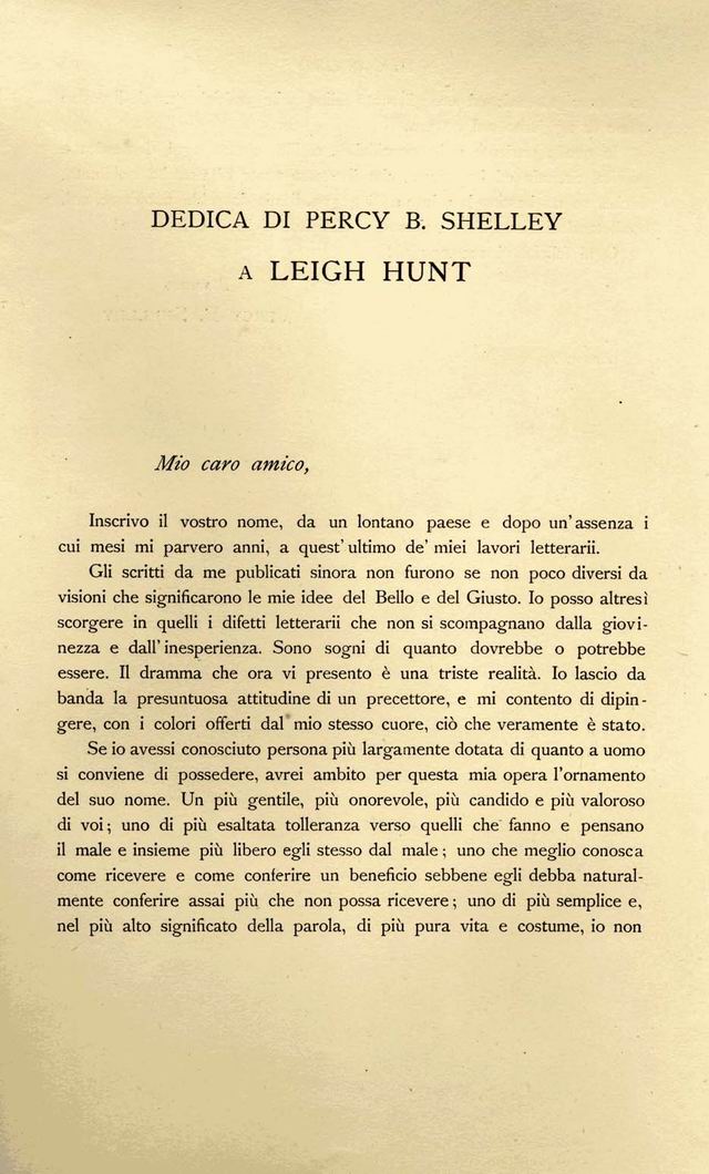 Dedica di Percy B. Shelley a Leigh Hunt