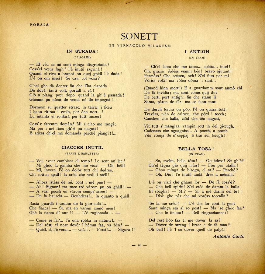Sonett: (In vernacolo milanese)