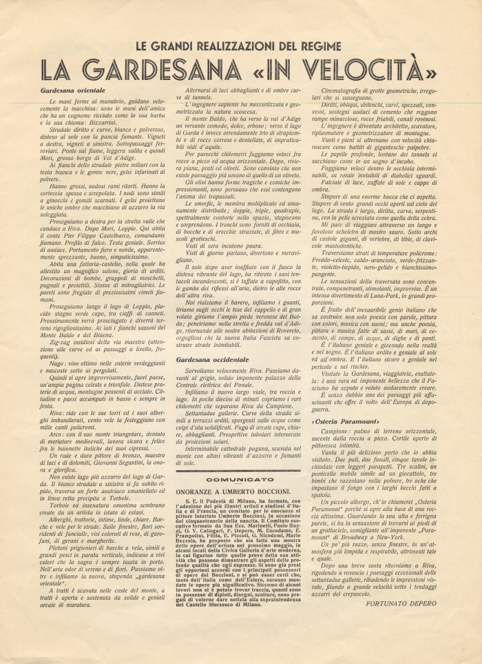 Le grandi realizzazioni del regime: La Gardesana «in velocità»
