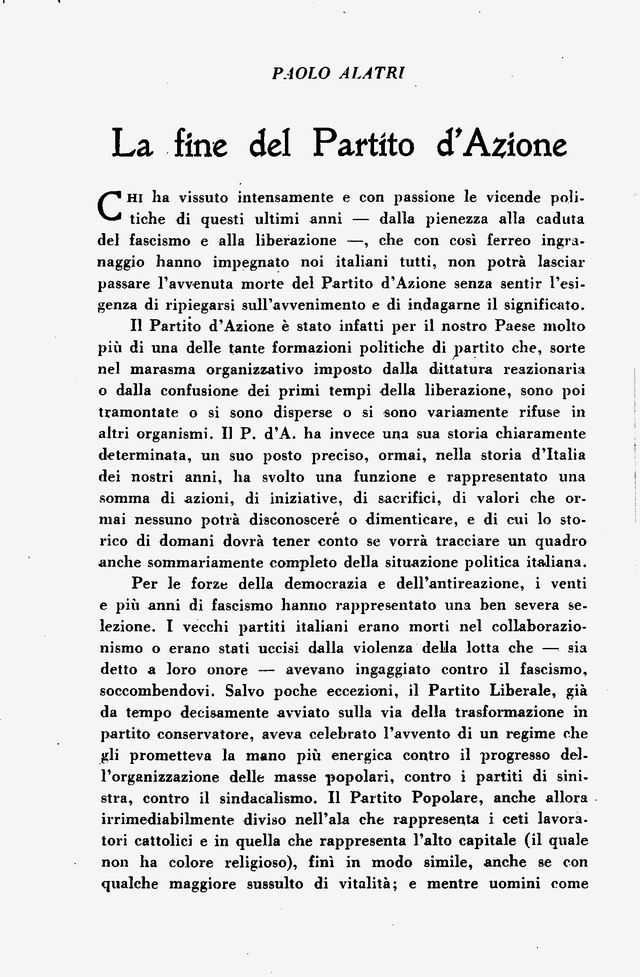 La fine del Partito d'Azione