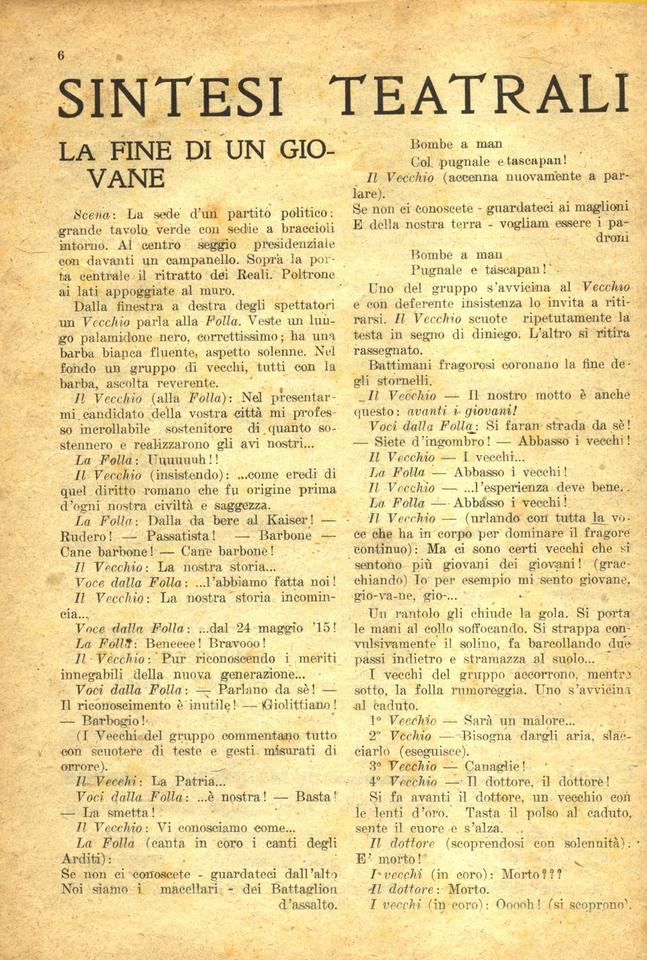 Sintesi teatrali: La fine di un giovane