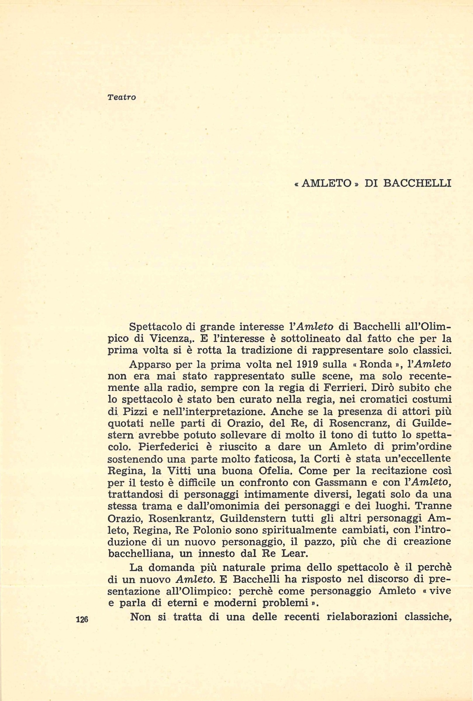 «Amleto» di Bacchelli