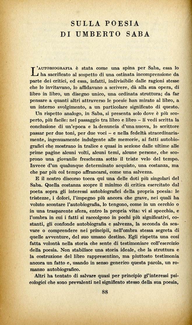 Sulla poesia di Umberto Saba