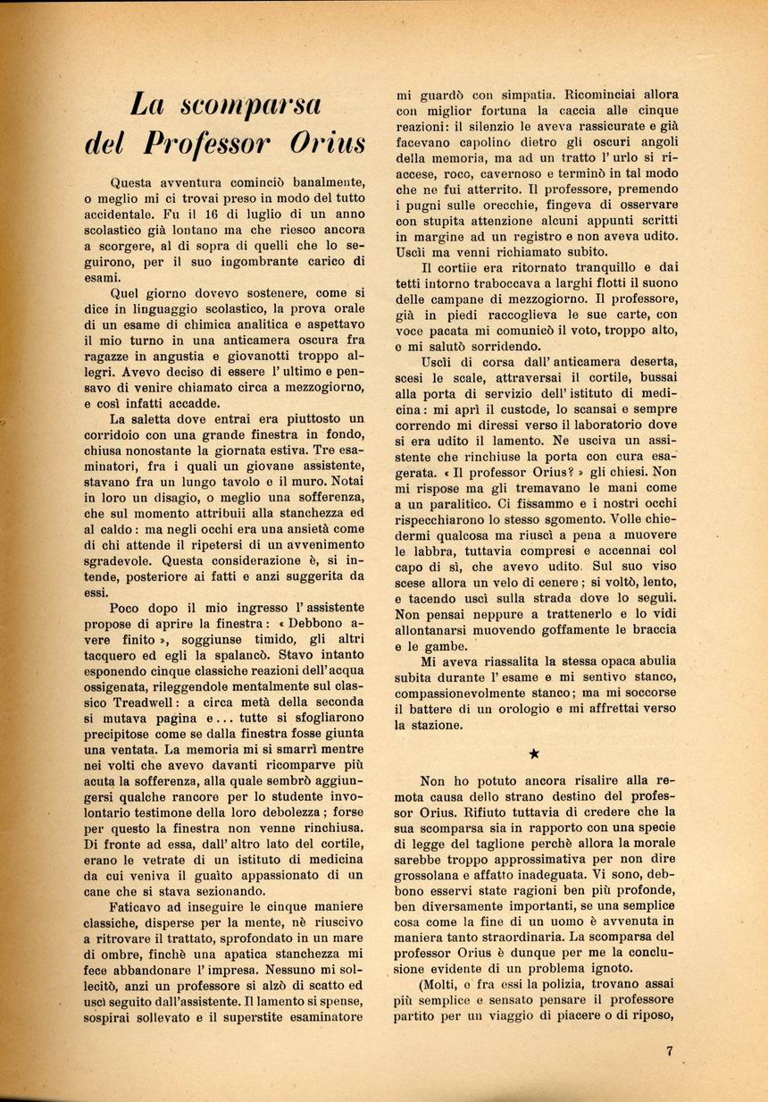 La scomparsa del Professor Orius
