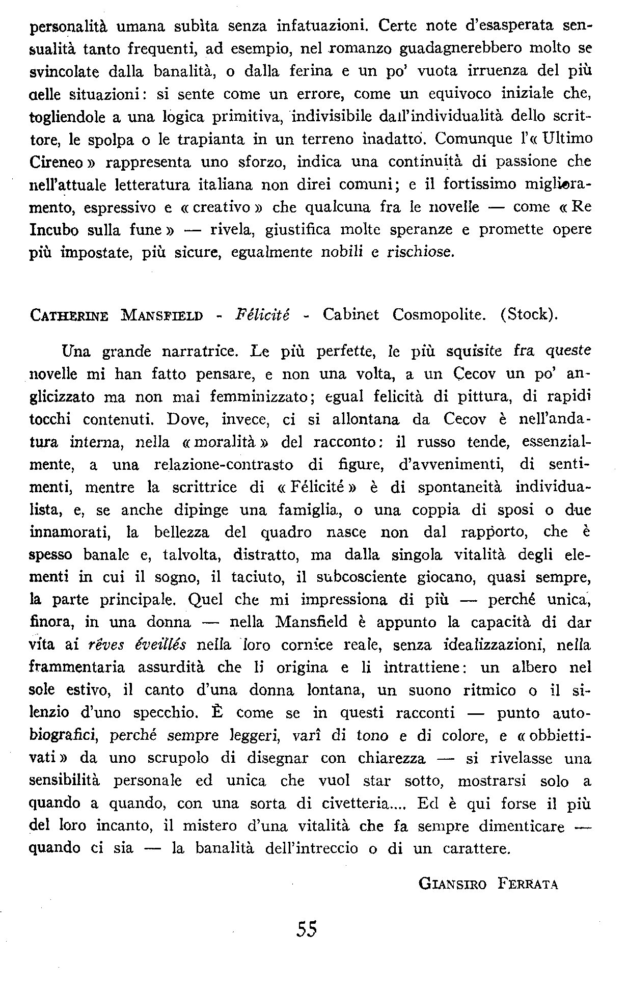 Catherine Mansfield, Félicité