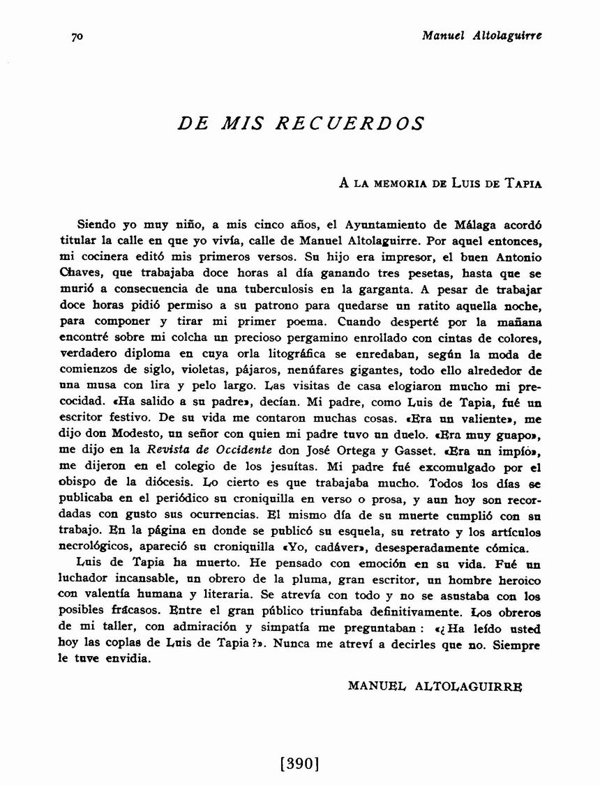 De mis recuerdos: A la memoria de Luis de Tapia
