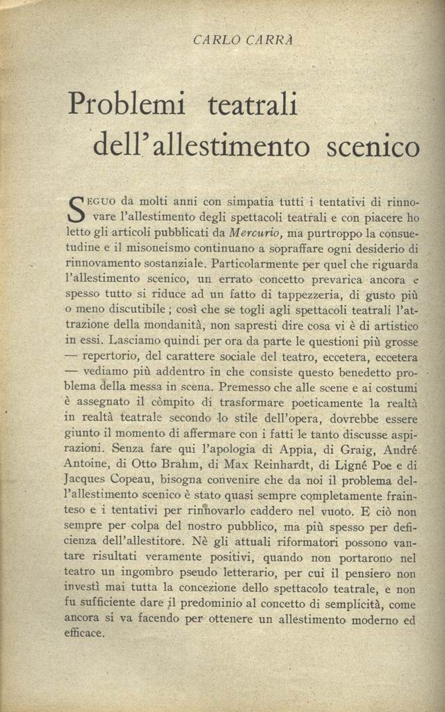 Problemi teatrali dell'allestimento scenico